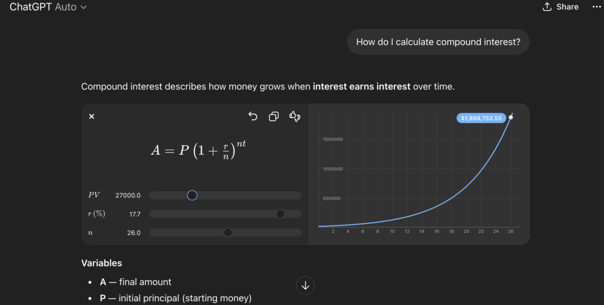 OpenAI, kullanıcıların karmaşık matematik ve bilim konularını anlamalarına yardımcı olmak için dinamik görsel açıklamalar tanıttı. Sadece yazılı açıklamalar sunmak yerine, ChatGPT artık kullanıcı girişine yanıt veren etkileşimli diyagramlar ve görsel modüller gösterebiliyor.