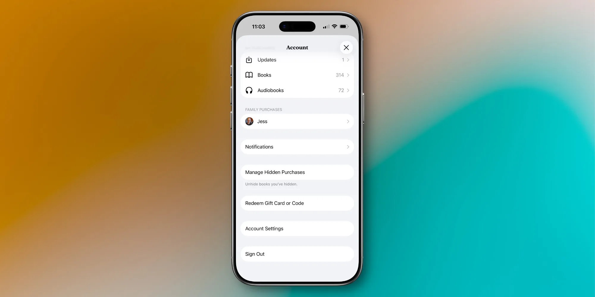 Nell'app Apple Books, Apple non ha ancora adottato il nuovo design dell'account Apple. Spero che questo cambi in un futuro aggiornamento.