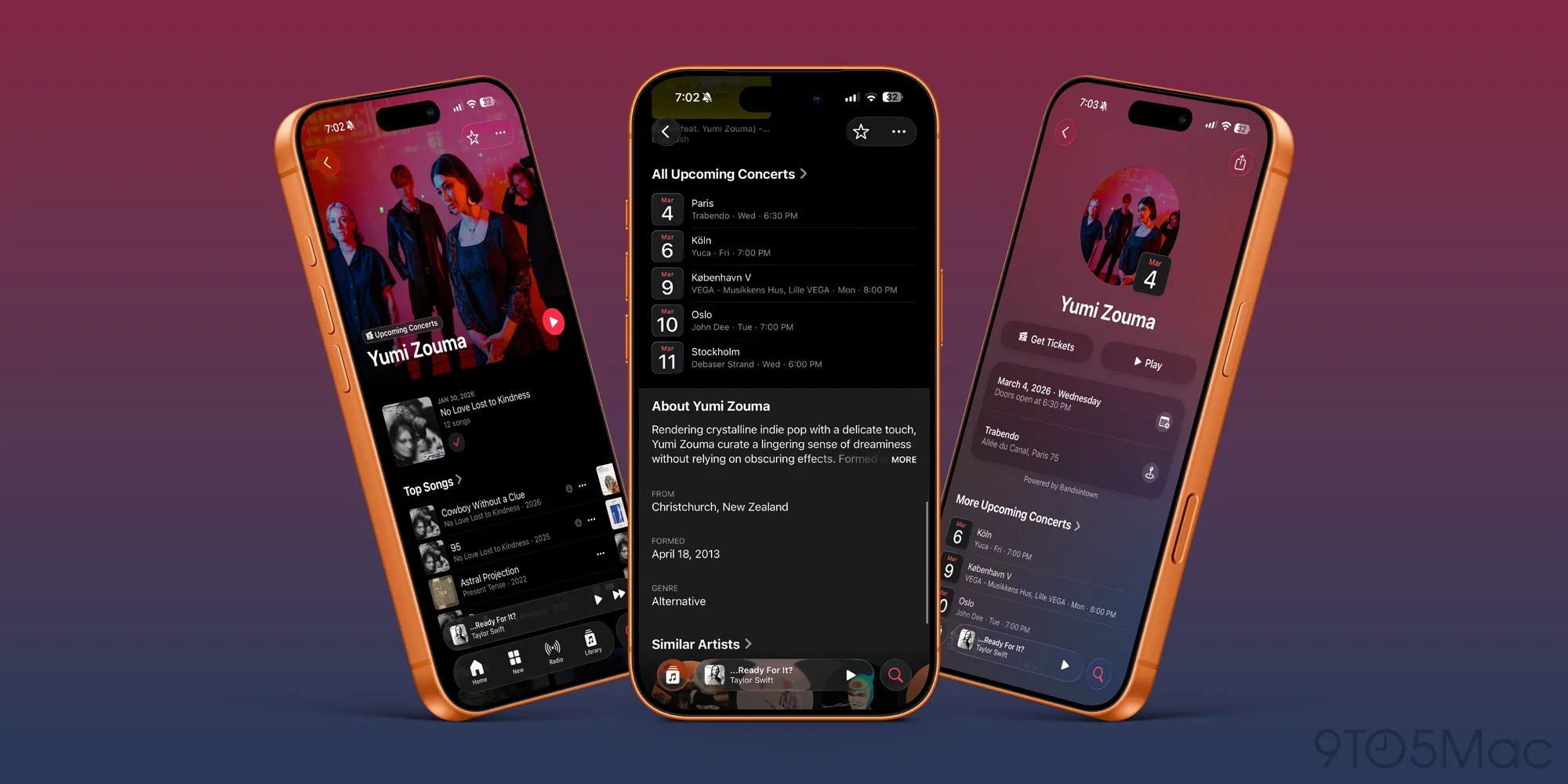 Uygulamadaki sanatçı profilleri artık konser bilgileri mevcut olduğunda 'Yaklaşan Konserler' kısmını vurgulayacak. Tüm yaklaşan gösterileri görmek için daha aşağı kaydırabilirsiniz.