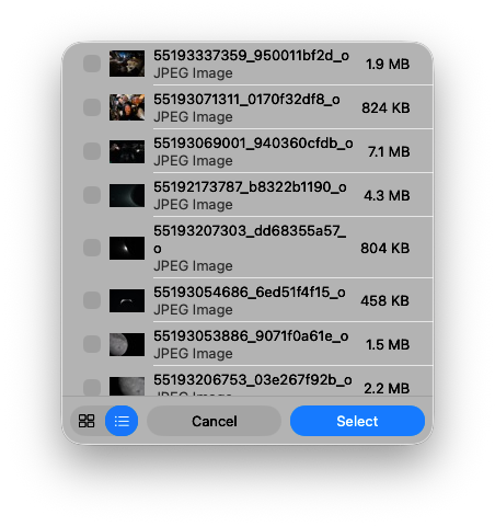 Daha önce de belirttiğim gibi, görüntüleri toplaması bir dakika alıyor, bu yüzden arka planda çalışmasına izin verin ve ardından küçük bir pop-up penceresi alacaksınız. İsterseniz liste görünümü veya görüntü görünümü seçebilirsiniz. İstediğiniz fotoğrafları aldıktan sonra, bunlar fotoğraf kütüphanenize kaydedilir.