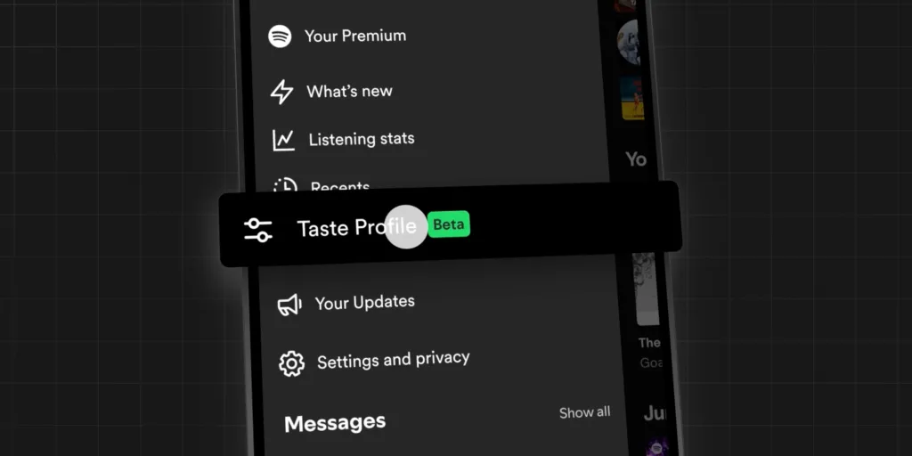 Taste Profile, Spotify'ın zevkinizi nasıl anladığını görmenizi ve bunu kendiniz şekillendirmenizi sağlar, böylece Spotify ana sayfanızda ne gördüğünüzü yönlendirme yeteneği sunar. Sevdiğiniz sanatçılardan ve türlerden, gününüzü tanımlayan alışkanlıklara kadar müzik, podcast ve sesli kitaplar arasında dinlediklerinizi bir araya getirir. 90'lar alternatif rock müziğini keşfetmeye başladığınızı veya belirgin etkileri olan hip-hop'a yöneldiğinizi görebilirsiniz.